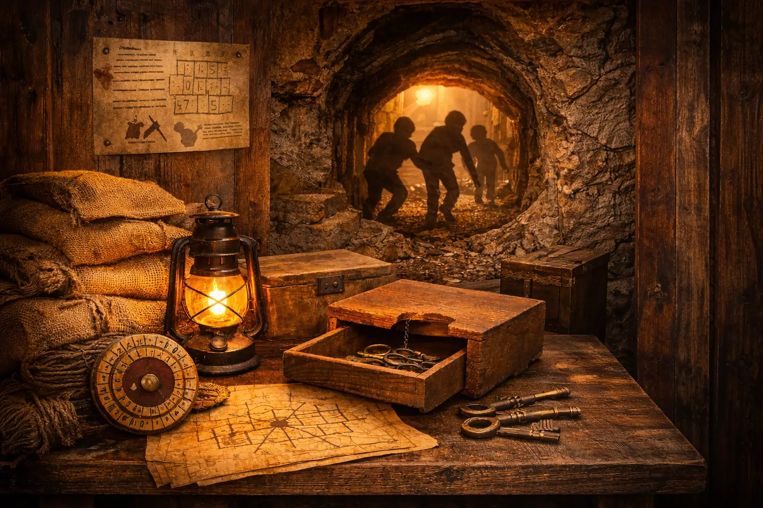 Step back in time and become a brave conductor on the Underground Railroad. In this powerful and inspiring room, players work together to help guide freedom seekers to safety by solving puzzles, cracking codes, and uncovering hidden paths. Children will learn about courage, teamwork, and resilience while navigating secret compartments, coded messages, and historical clues.